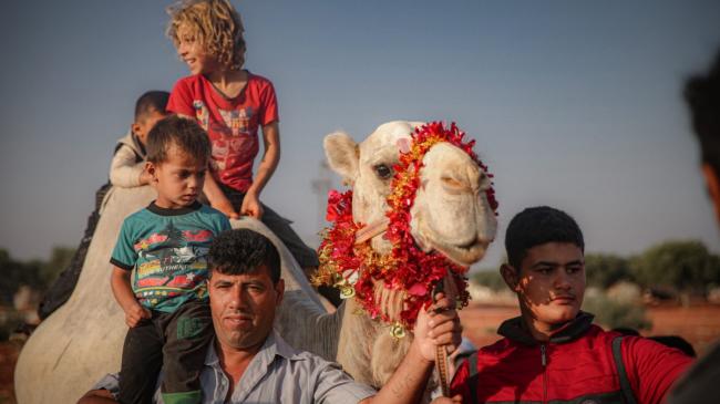 Гражданские лица в северо-западной сирийской провинции Идлиб, где беженцы искали убежище во время затяжного конфликта в стране, приветствовали начало праздника Ид аль-Адха,…